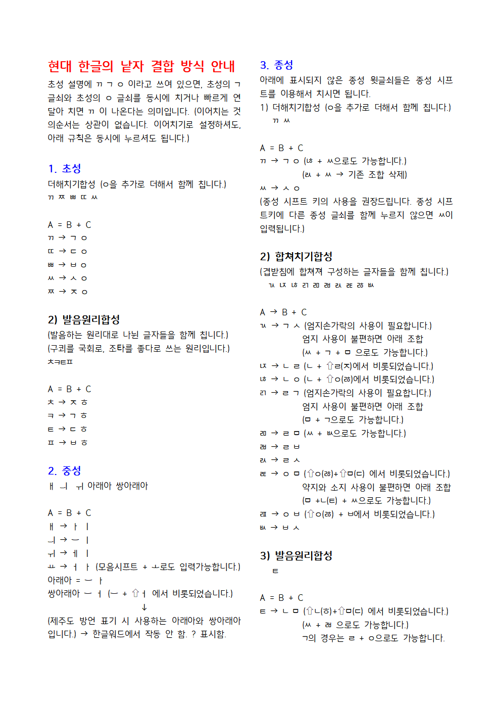※ ㅍ : ㄴ + ㅂ (실사용 거의 없음) → 조합삭제 → ㅂ + ㅆ = ㅍ (실사용 조합)