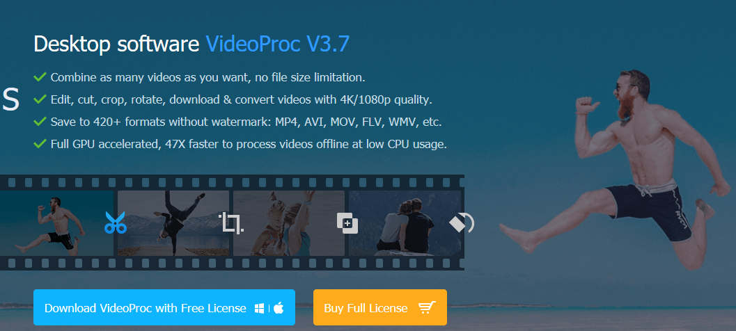 Free Trial 다운로드 : Desktop software VideoProc V3.7 ↓