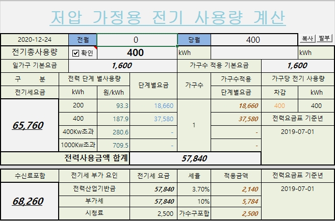※ 일반 사용자가 전기세요금 계산 할 필요는 없지요. 전력공사 홈피에도 계산기능이 있음.