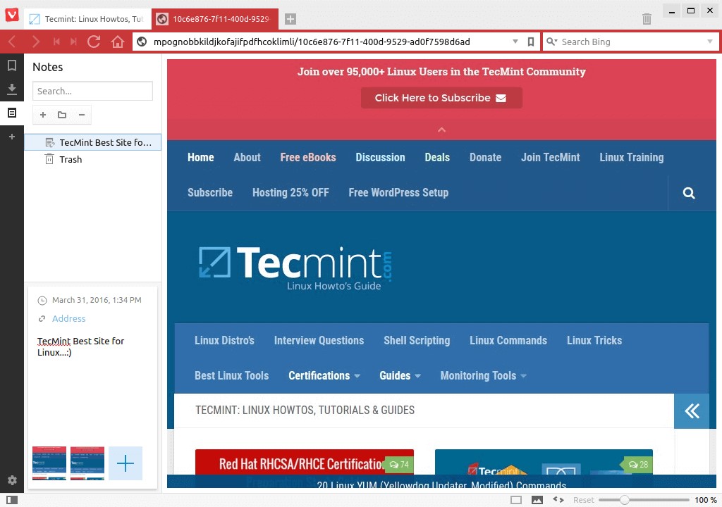 한 달 간의 개발, 긴 미리보기 세션 및 수백만의 다운로드 후 마침내 Vivaldi 브라우저는 안정적인 버전 1.4를 출시했으며 브라우저 단축 다이얼, 사용자 정의 테마, 테마 예약, 사용자 정의 메모, 사용자 정의 검색 지원, 개선된 기능과 같은 많은 기능을 제공합니다.