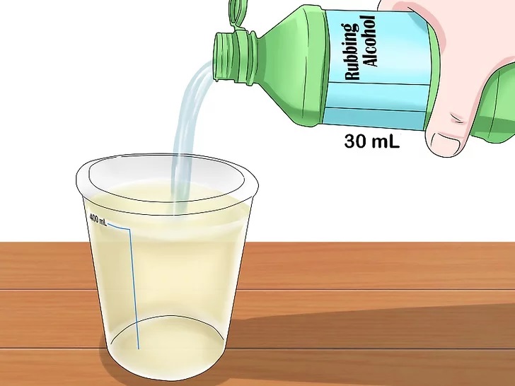4. 소독용 알코올 1 fl oz (30 mL)를 백식초에 섞으세요. 이소프로필 알코올은 백식초에 섞어도, 그대로 써도 굉장히 효과적입니다. 저렴한 진을 이용해도 비슷한 결과가 나옵니다. 아무 술이나 하나 골라서 백식초와 섞어 잘 섞으세요.