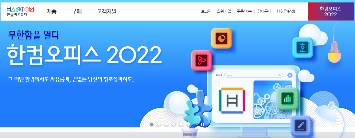 무한함을 열다 한컴오피스 2022 그 어떤 환경에서도 자유롭게, 끝없는 당신의 창조성까지도.