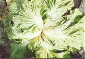 | 병징 | 배추에서 가장 피해가 큰 병해이다. 초기에 지제부 하위엽의 엽병 또는 줄기에서 부터 발병해서 담갈색 수침상의 병반이 급속도로 잎부분까지 확산되며 차례로 다른 엽병에도 확산되어 결국에는 결구내부까지 연화, 부패하게 된다. 처음부터 줄기와 직근이 침해받으면 외엽이 심하게 부패하면서 급속도로 전체 식물체가 시들고 그 후에 연부가 진전된다. 발병 후 건조한 기후가 계속되면 연부한 부분부터 암갈색으로 변한다. 이 병주는 악취를 풍기는 것이 특징이다.![]() |