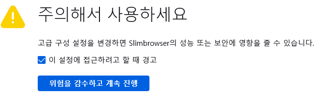 주소줄에 about:config 입력하고 고급설정으로 진입한다.