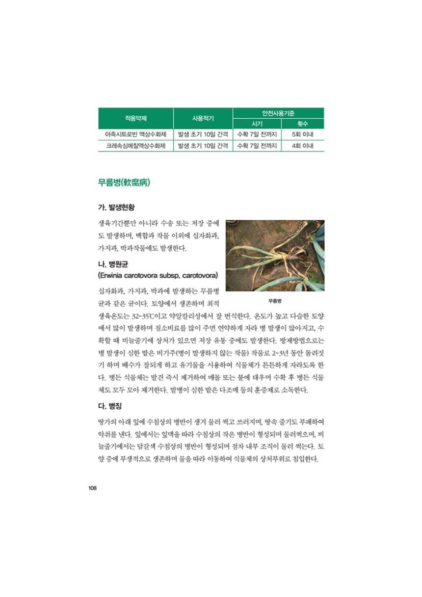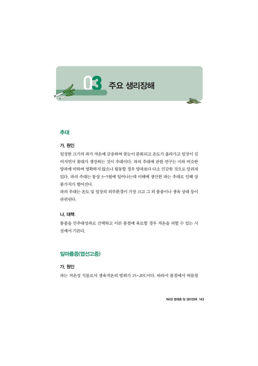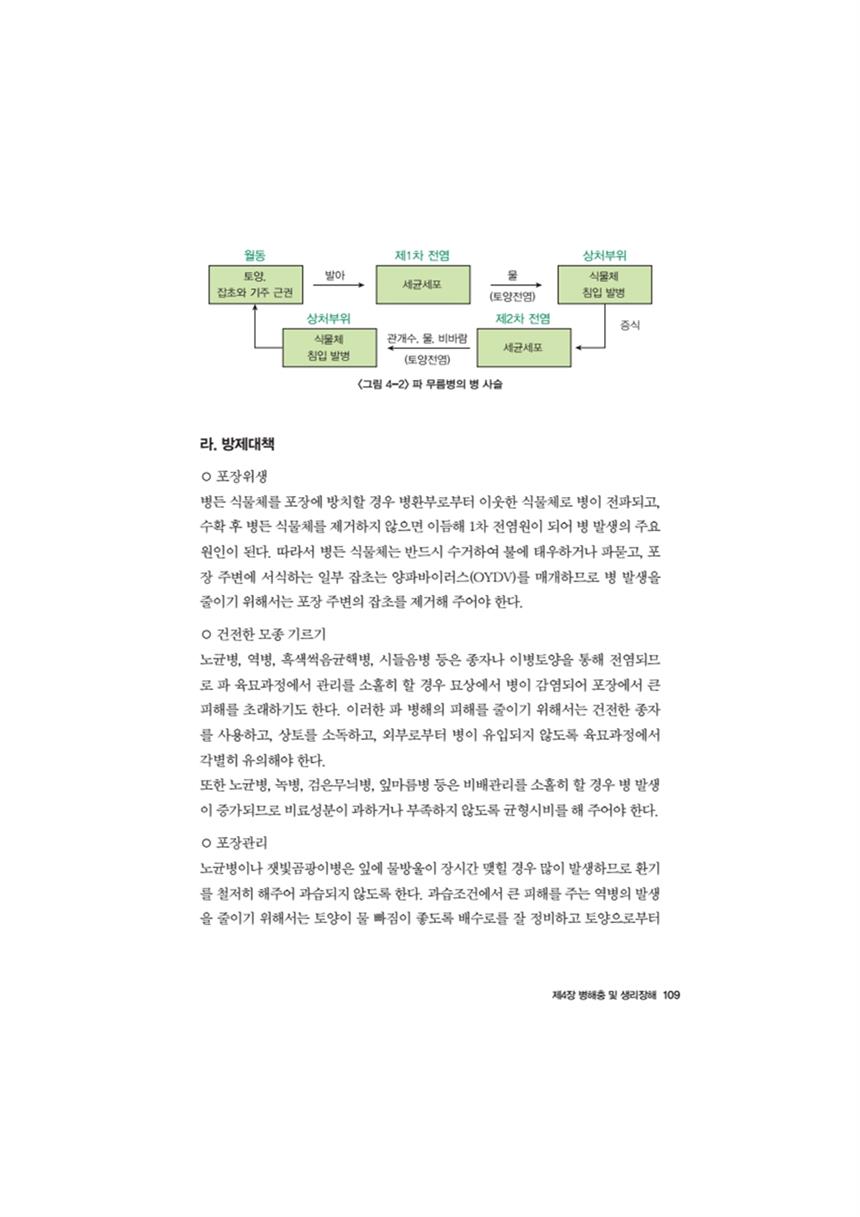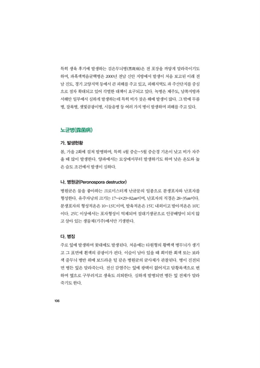 영농길잡이에서 대파 병해발생과 방제부분을 올립.
