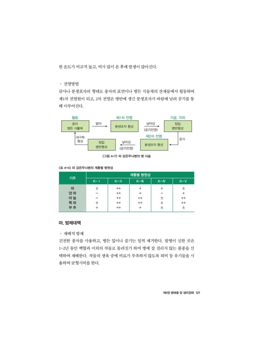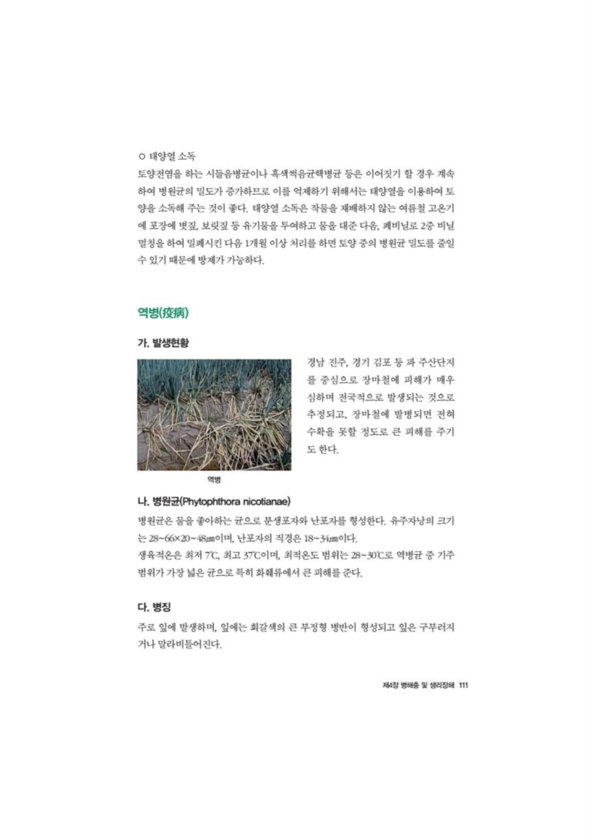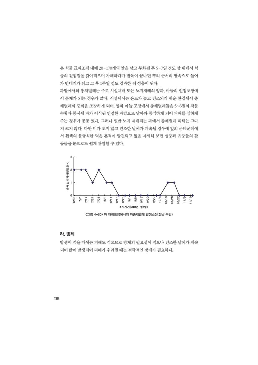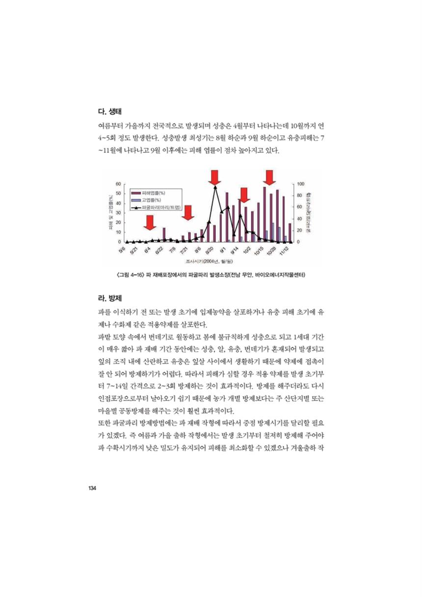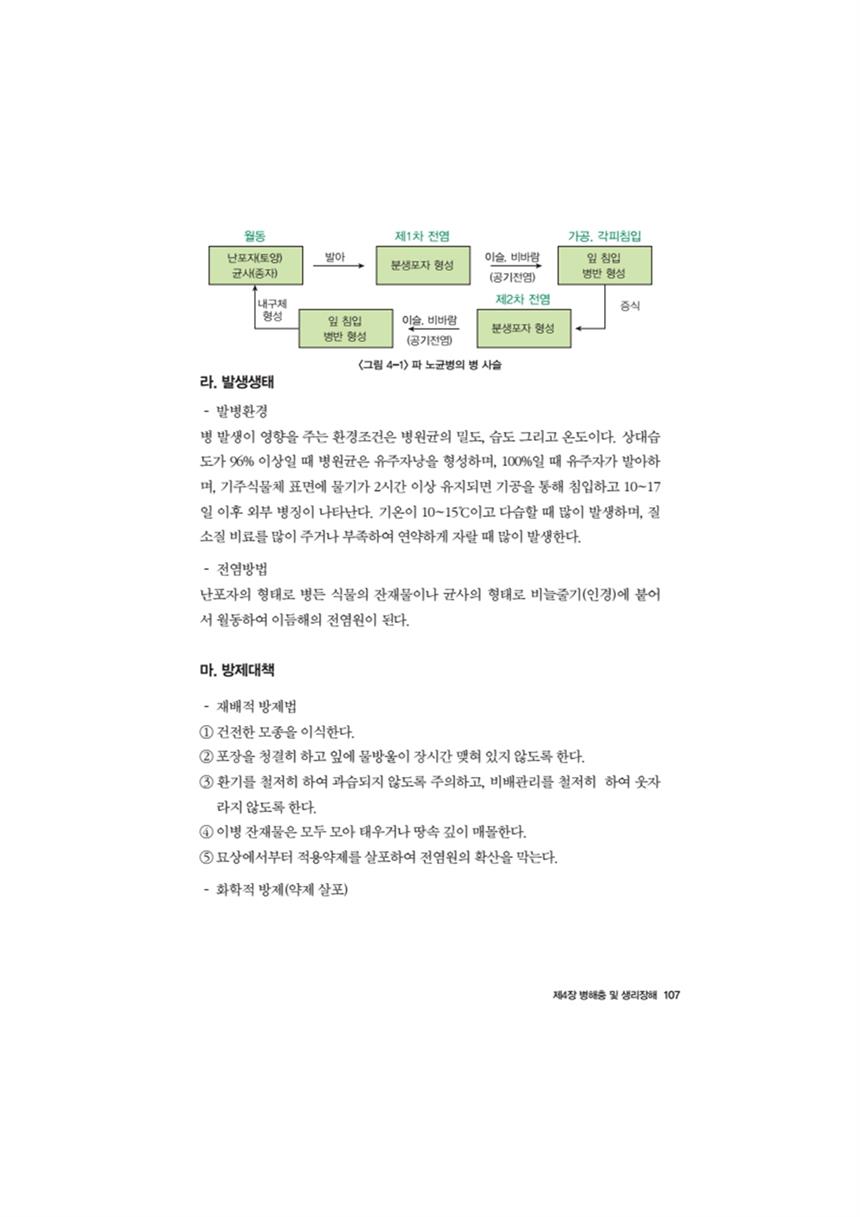 영농길잡이에서 대파 병해발생과 방제부분을 올립.