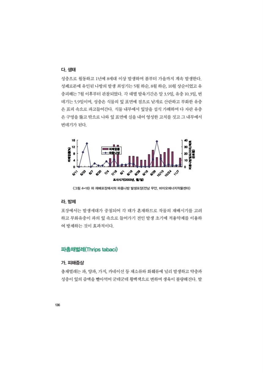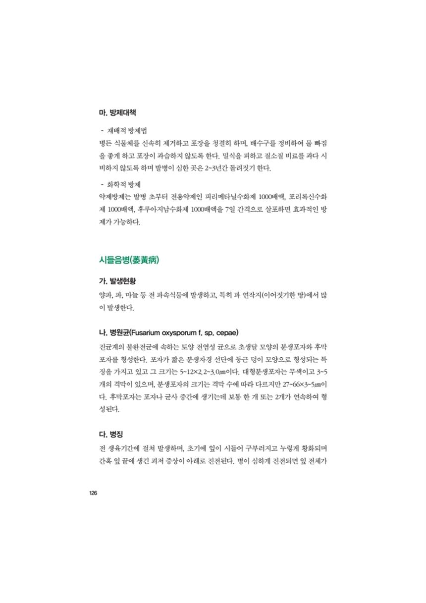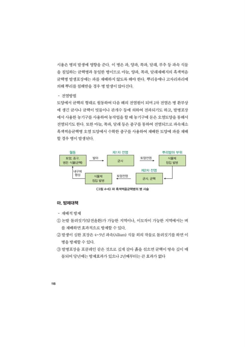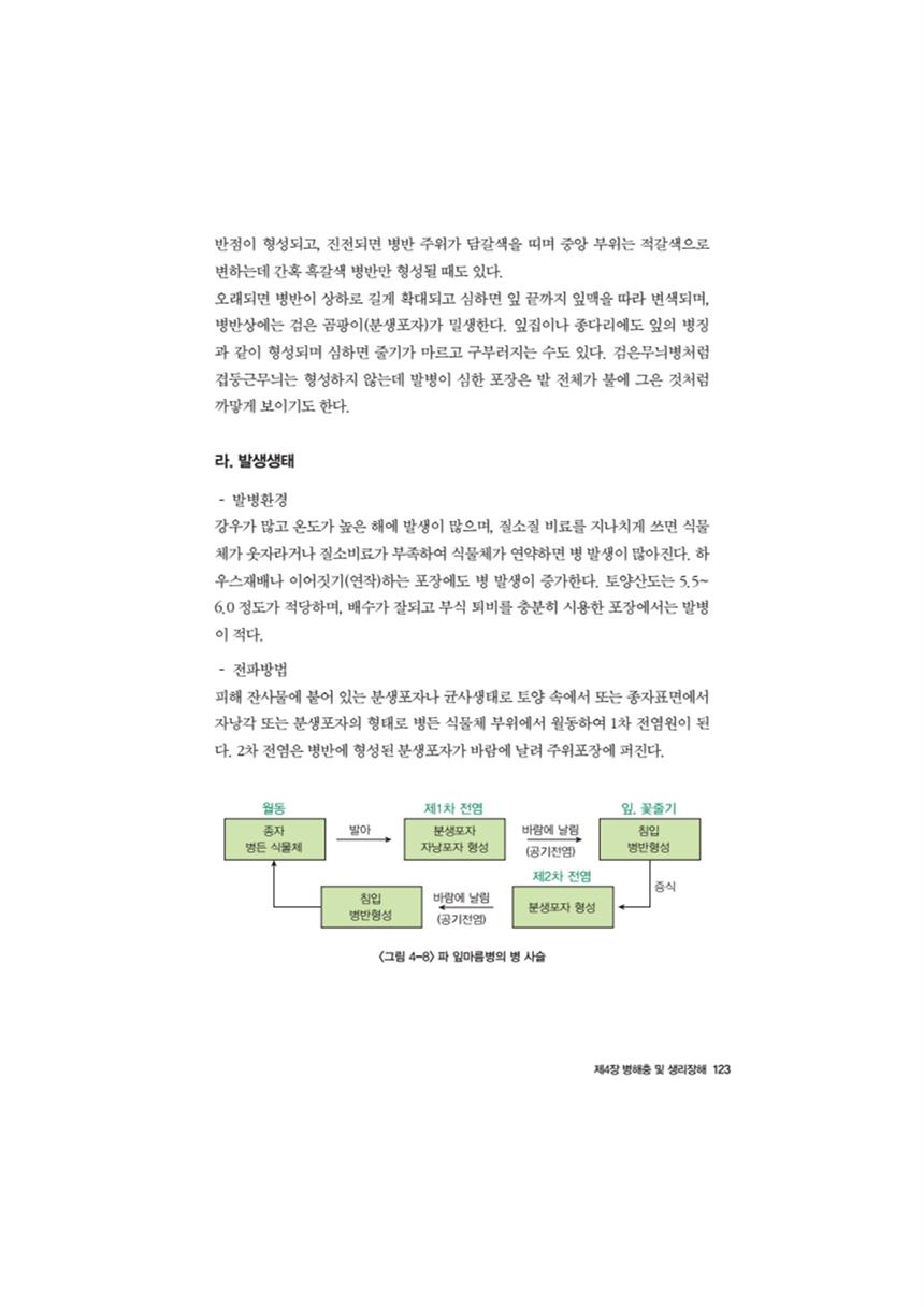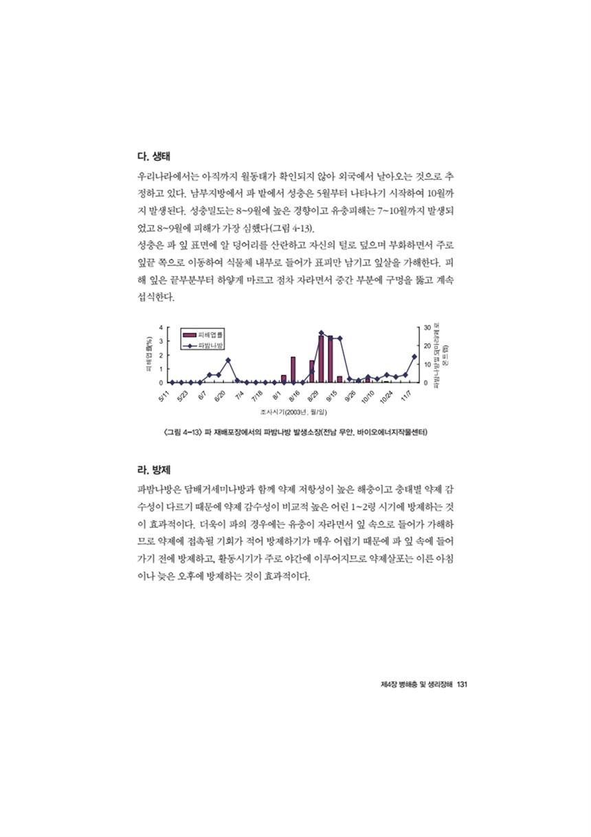 영농길잡이에서 대파 병해발생과 방제부분을 올립.