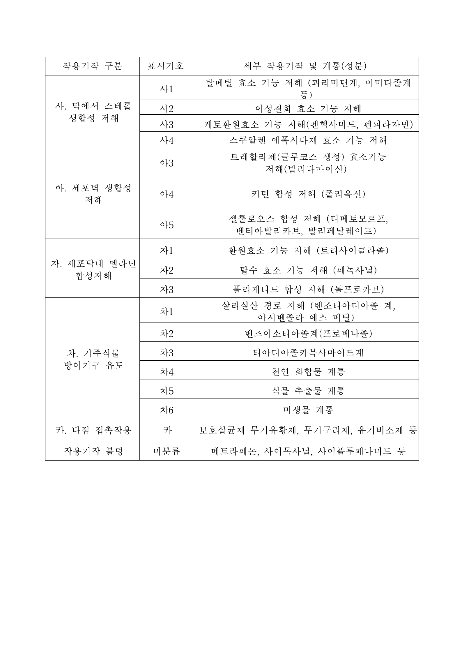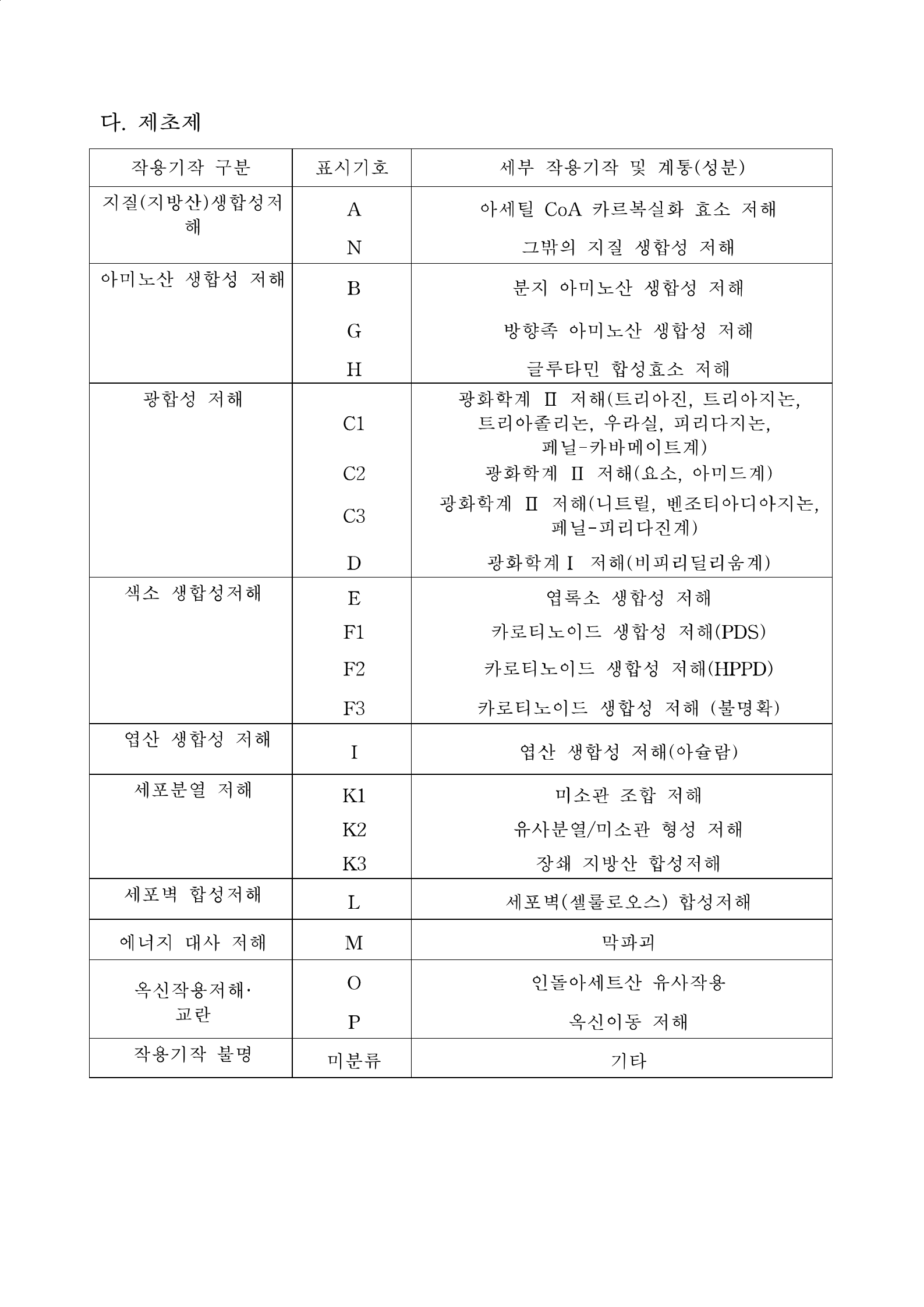 “아5”는 세포벽 생합성 저해 → 셀룰로오스합성 저해 이것은 탈수시킨(말려 죽인다.)다. 정도만 감을 잡으면 됩니다.