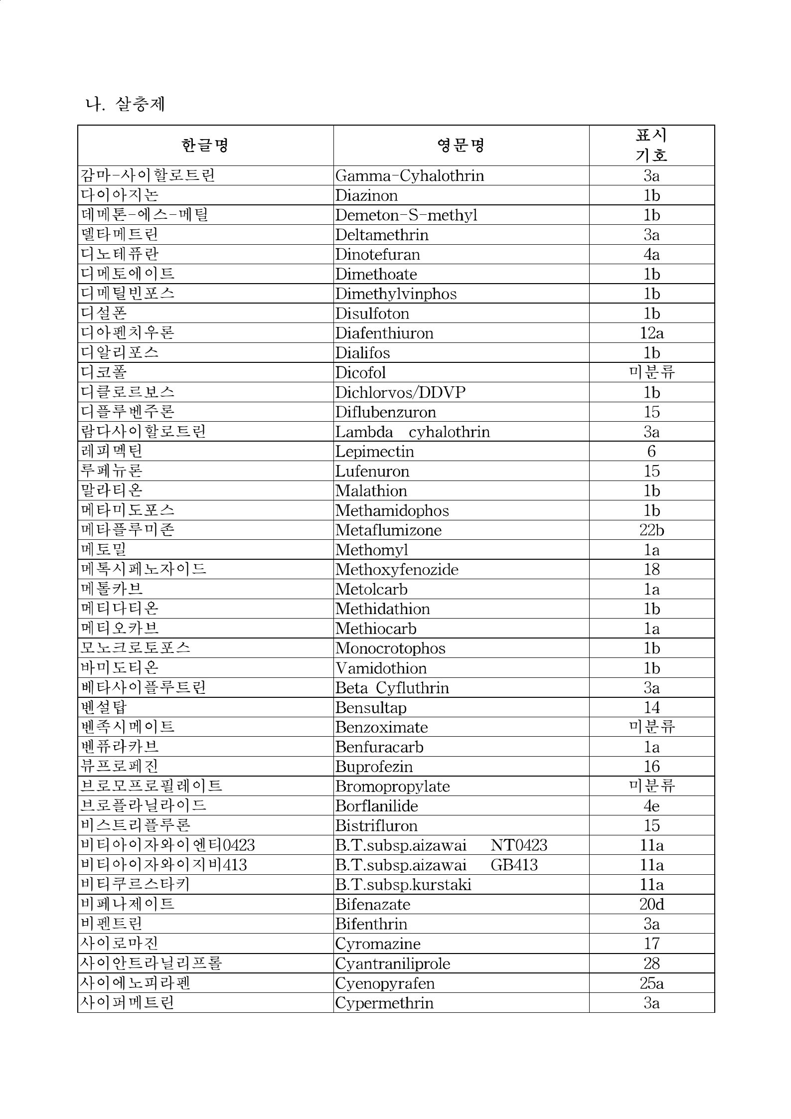 농약은 학술적 용어를 사용합니다. 이것이 품목명이라 합니다.