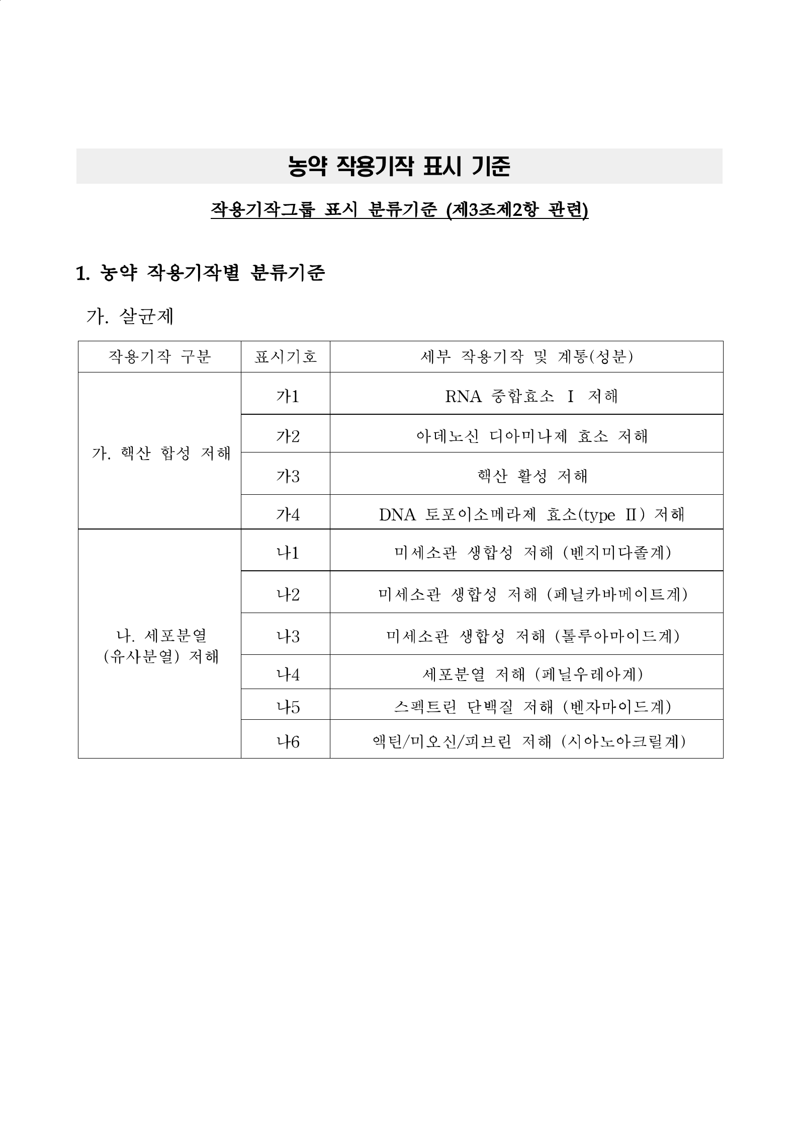 여기서 “가1”은 핵산합성 저해 RNA기능 저해라고 합니다.