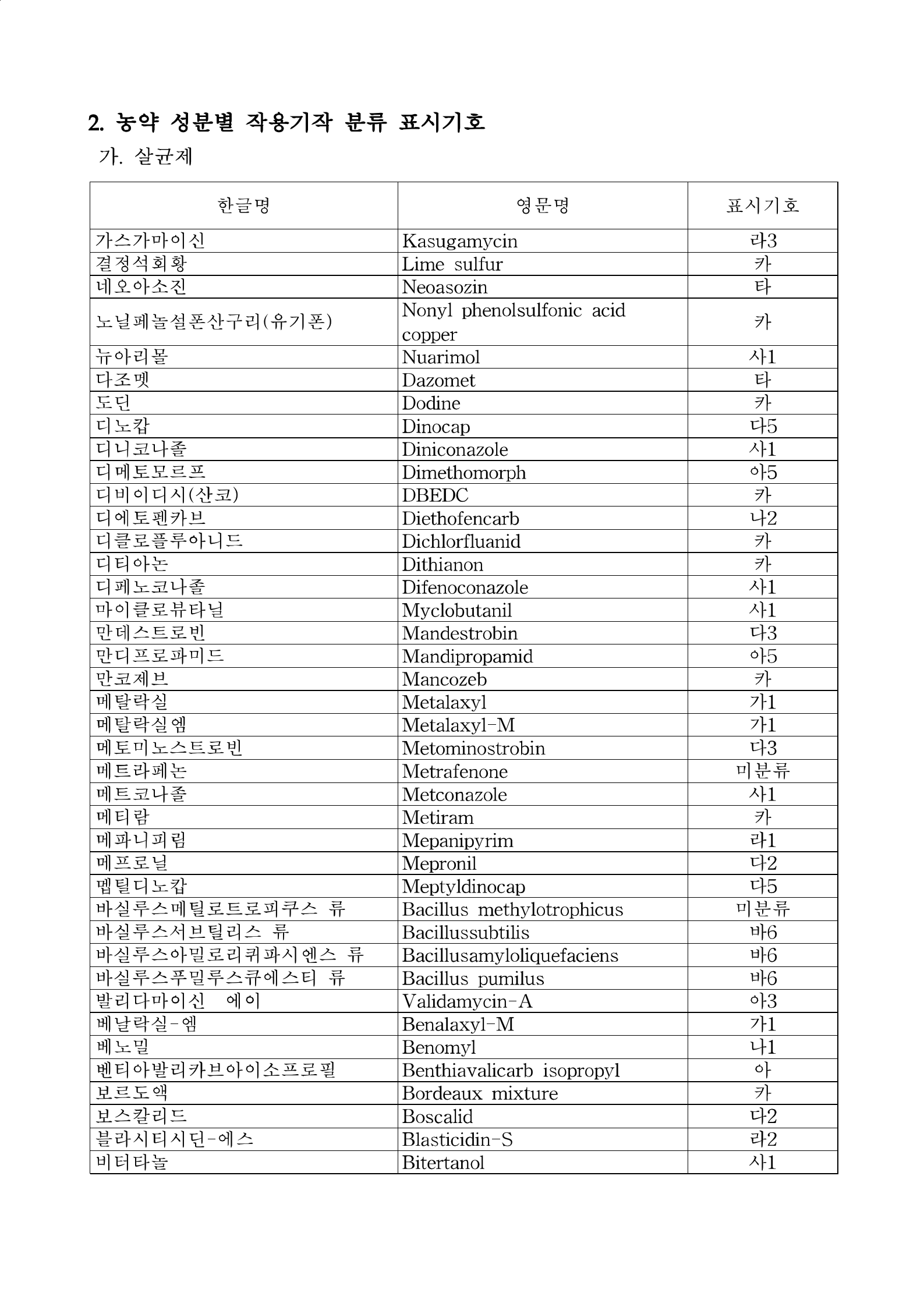 배추의 노균병약제로 예를 들자면 아래와 같습니다.