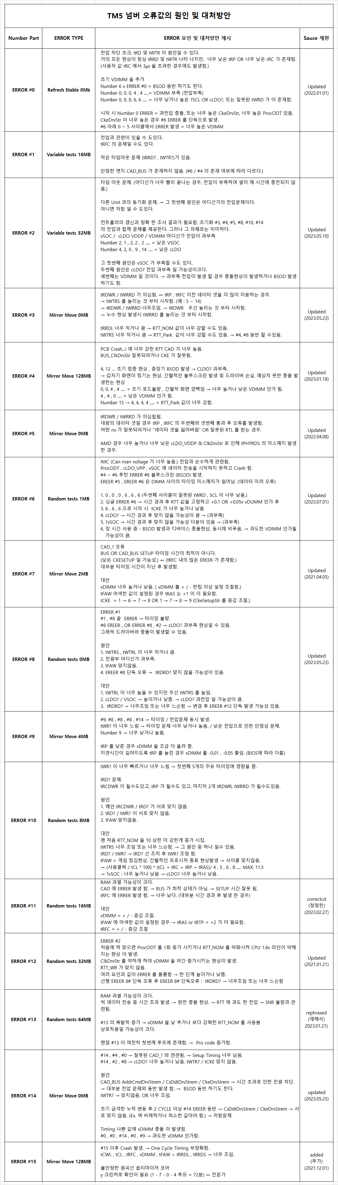 램오버테스트로 많이 사용하는 프로그램이지만 각각의 오류을 의미을 알수가 없습니다.