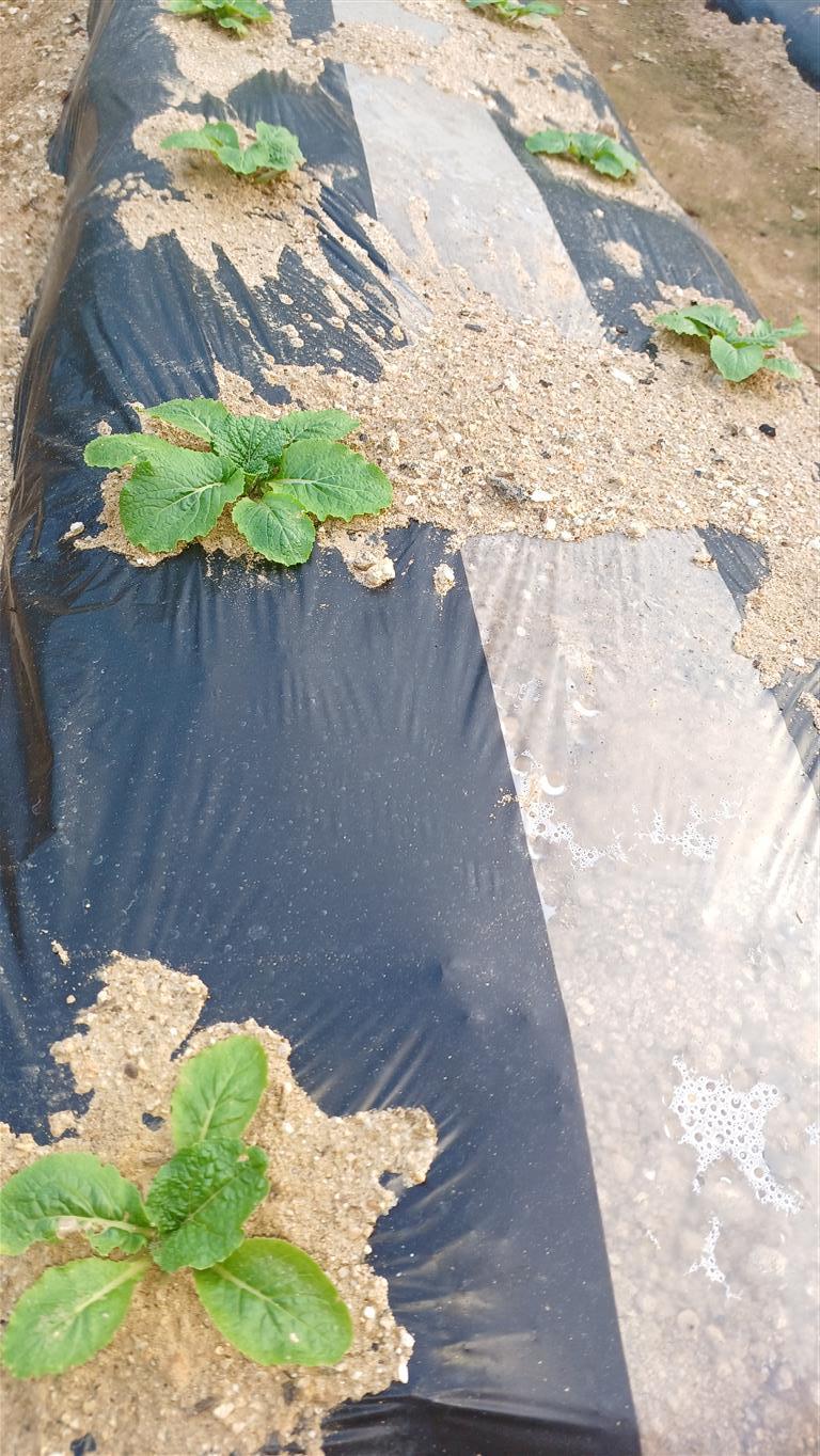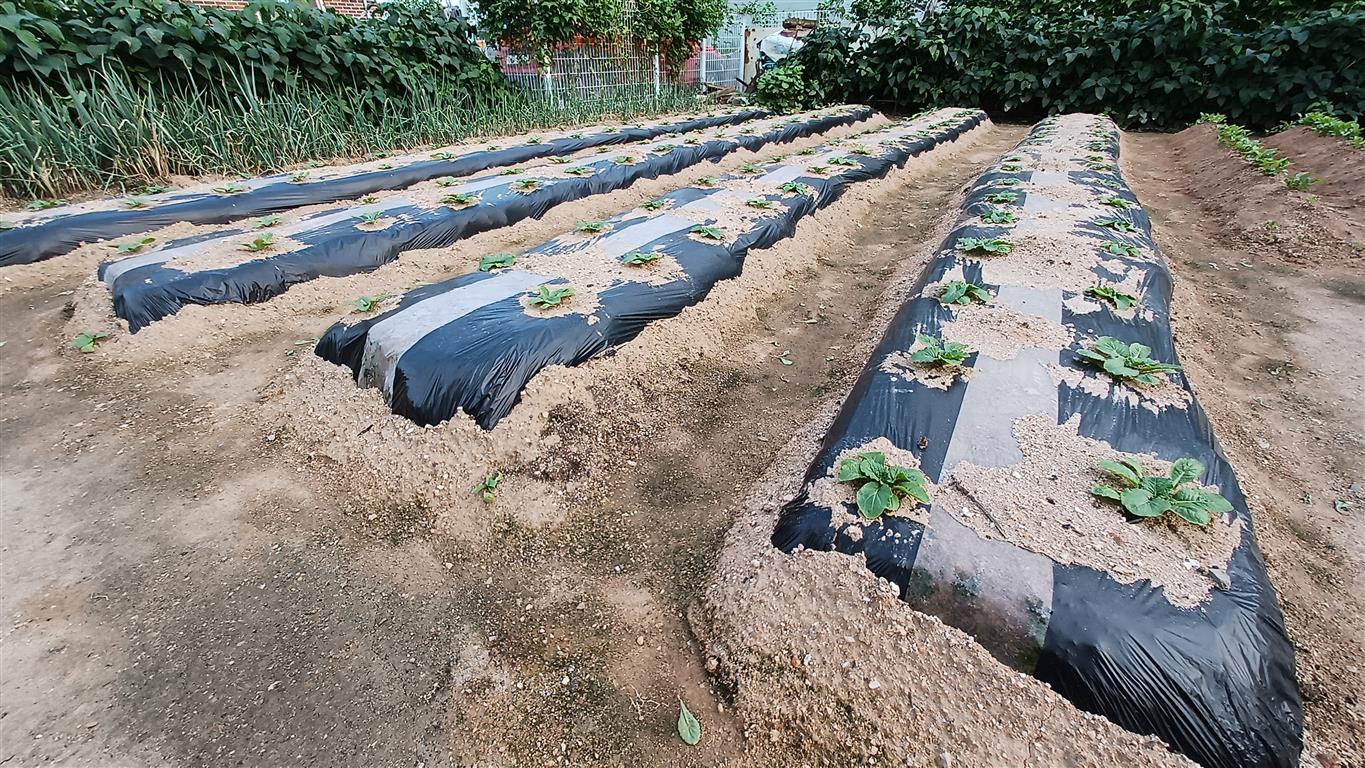 퇴비와 석회, 규산질 비료를 먼저 뿌리고 밭갈이를 하고 나흘수에 이랑을 만들고 고름작업을 하지 전에 토양살충제와 붕사, 뿌리훅병살균제, 진딧물입제를 뿌리고 피복작업을 완료하였다.